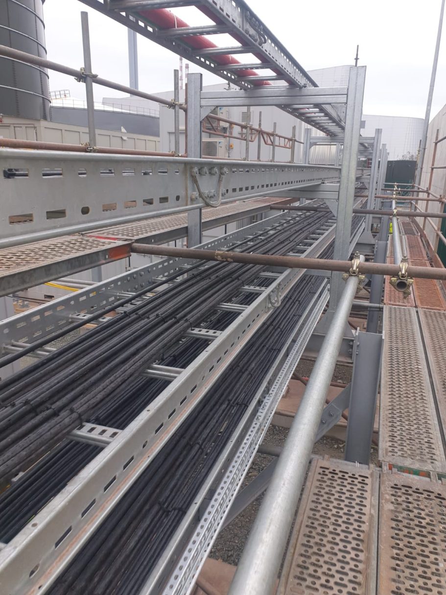 Our Electricians and skilled General operatives are working hard together to meet deadlines scheduled for this project. These qualified operatives are installing all steel containment systems, such as ladder, trunking, pipe, basket and tray. Also glanding and terminating all cables by our crews.